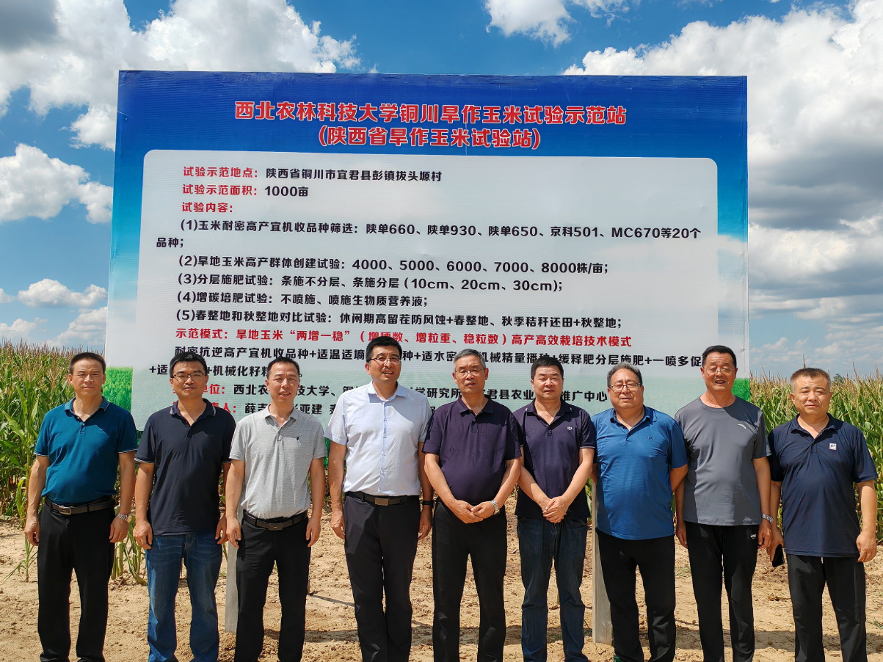 2009年,西北农林科技大学通过“试验示范-设点推广-技术集成”的模式,促使铜川市宜君县实现了两大跨越:一是品种换代,成功选育并大规模推广了以“陕单609”为代表的高产、耐密型新品种,使亩产突破千斤关;二是技术革新,联合创新了“七项关键集成技术”及“5335”集成技术,实现了地膜覆盖、配方施肥到机械化籽粒收获的飞跃,显著提升了生产效率和效益。2024年由西北农林科技大学与铜川市人民政府合作共建西北农林科技大学铜川市旱地玉米试验示范站,试验站具备开展科学研究、技术示范、技术培训和学生教学实习的条件。