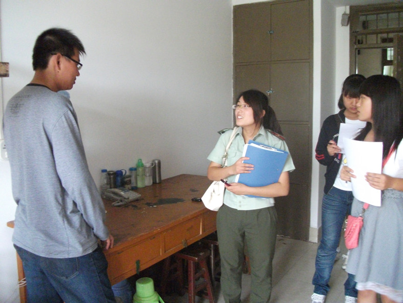 9月3日中午,学生会各部在辅导员王娜老师的带领下,对11级军训新生的内务整理情况进行了一次大检查。