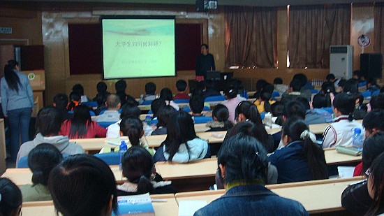 冯教授绘声绘色地为同学们作报告