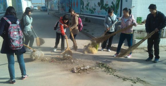 同学们积极清扫街道