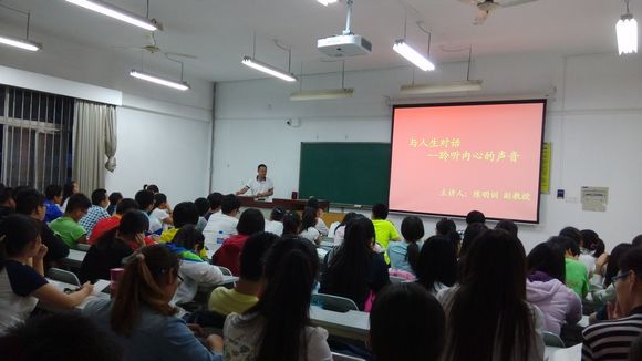 学期中部分学生迷失了方向,失去了前进的动力,为让学生更有规划、有斗志、有激情的面对大学生活,5月22日晚,农学院在北校八号教学楼举办“与人生对话––聆听内心的声音”报告会,陈明训副教授应邀主讲。农学院辅导员及大一大二学生参与其中。
