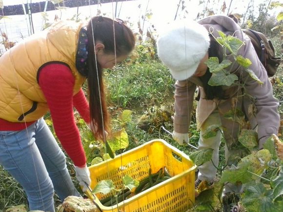 11月2日,田园使者张珂等七人前往斜上村常兴果蔬合作社帮助农民对大棚中的黄瓜进行最后采摘和整田工作。