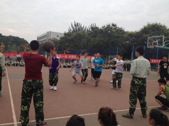 为丰富军训生活,8月23日早上,农学院组织了一场新生篮球赛。参赛的必胜队和专打必胜队队员均由高大威猛的新学员组成,一营营长和辅导员及其他学员在旁加油助威。比赛开始,必胜队火力全开,积极进攻,一队员获取球权后,果断进攻,在队友掩护下,三步上篮,进球得分。专打必胜队不甘示弱,一个漂亮的盖帽令对手不敢轻视。整场比赛,看点颇多,巧妙传球、三步上篮、后仰跳投等层出不穷,喝彩声连连。队员彰显了生龙活虎、永不服输的男儿本色,带动了全营你追我赶的训练热情。也正是通过这样的比赛,让同学们更加有斗志,有激情,更加勇敢地面对军训这场勇敢者的游戏。