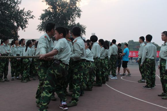 为公平起见,在营长的带领下将一连、二连男女生混编后分成两组,其中一组队名为必胜队,另一组队名为专打必胜队。两队分别推选出20名代表,形成了均由十男十女组成的必胜队和专打必胜队两个阵营。比赛开始,队员们拼尽全力,咬牙蹬地,心系中间红绳。两队势均力敌,胜负难分,呐喊声震彻篮球场。最终,专打必胜队以2:1顽强取胜。必胜队心有不甘,但仍接受了“女歌男舞”的惩罚。