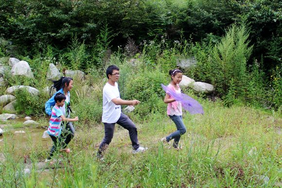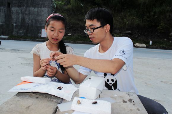 左亚运和孩子们一起捕捉昆虫