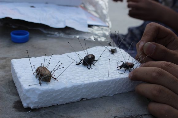 植物标本制作由服务队队员,来自农学院的博士研究生邓健负责讲授。孩子们在邓健的带领下,采集了具有代表性的几株植物。随后邓健用提前准备好的标本夹以边演讲边示范的方式向孩子们讲解了简单标本的制作方法。昆虫标本制作由来自植保学院研究生左亚运负责讲授,孩子们用自己制作的简易捕虫网捕捉到了各类昆虫,随后左亚运运用自己的专业知识向孩子们简单讲解了昆虫的分类,而后带领孩子们用简易的工具制作了昆虫标本。