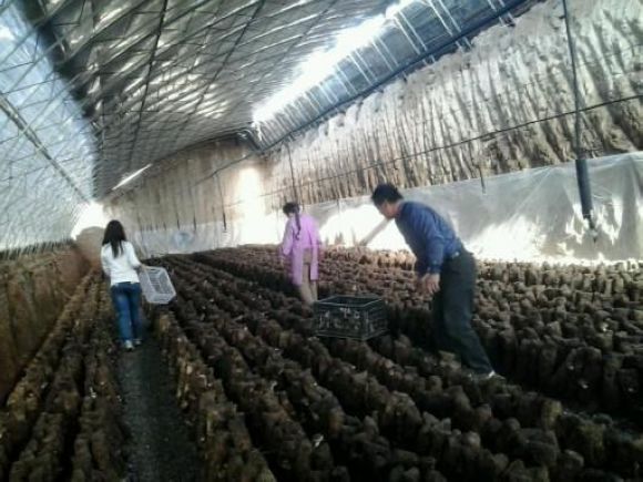 5月11日上午8时,农学院“田园使者”在香菇采摘繁忙季来到寨西村振辉合作社帮助村民采摘香菇。