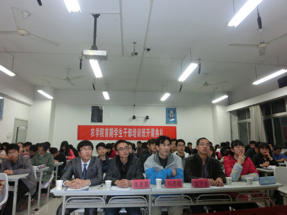 为全面提升我院学生干部综合素质,帮助学生干部工作提高工作效率和水平,提升学院基层教育管理质量,11月6日晚,农学院在北校区N8309教室隆重举行了学生干部培训班开班仪式,学院党委副书记马志宏出席仪式,并以“如何做好学生干部”为主题为学生干部上了第一课。农学院团工委书记梁子龙和辅导员朱若晨与50余名主要团学干部参加了开班仪式,并聆听了培训的第一课。