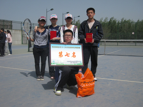 4月14日上午,我校2013年院系间学生网球团体赛在北校区网球场落下帷幕,我院网球队通过默契配合和顽强的拼搏,以3:0的大比分战胜外语系荣获第七名。校团委、体育部等相关负责人出席了颁奖仪式,并为获胜球队颁奖。