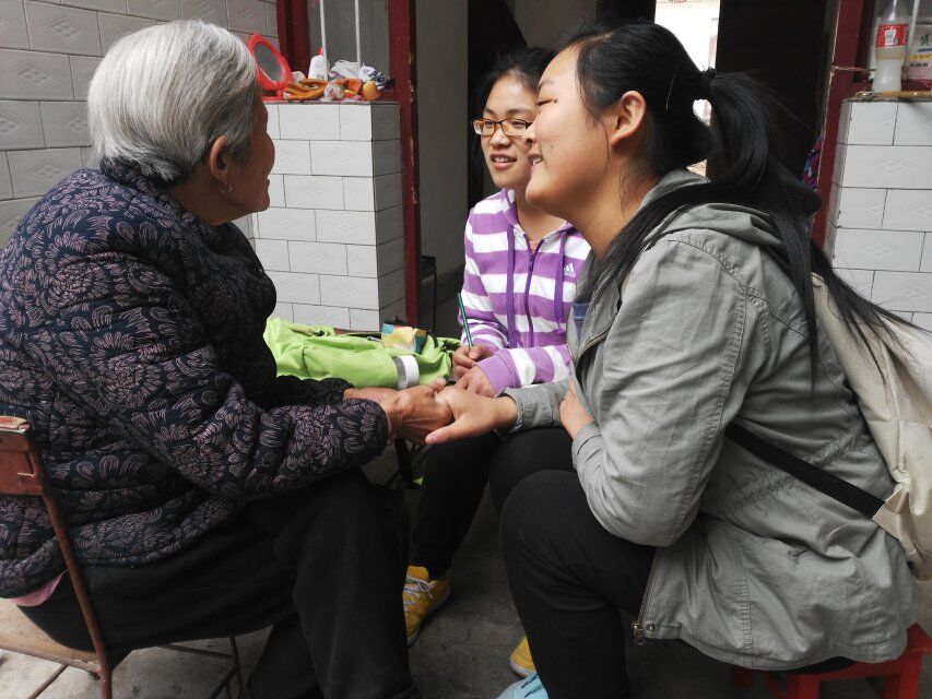 志愿者们根据孩子们的新学期的学习进行一对一辅导,帮助孩子检查功课。另一组志愿者来到村民中间,通过交流了解他们的生活状况,帮助老人打扫卫生。村里的环卫工孟爷爷负责清理村里的生活垃圾,每天面对扬起的尘土和刺鼻的气味。见到志愿者们每周来帮忙,笑着说:“儿女不在身边,看到这些孩子也很开心”。