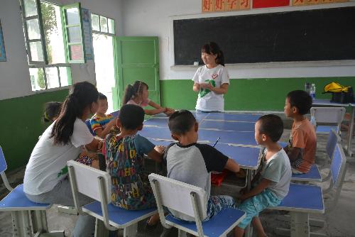 早晨八点左右枣园村的小朋友们都纷纷来到学校,孩子们见到队员都热情的打招呼,有的还奔跑过来拥抱。刚到教室,负责讲解地震和火灾演练的队员,就把准备好的材料给当地的小朋友,并以有奖竞答和实地演练的形式加深小朋友对课堂讲解的印象。为了充分调动小孩子们的兴趣,队员们特地准备了音乐课,听着孩子们稚嫩的嗓音,仿佛回到了童年无忧的时光。初中生的课程讲解也在持续进行,其中一位初中生表示,此次补习对他们知识点的巩固起到了很大的作用。