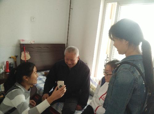 活动分为两部分,看望孤寡老人和帮忙做工。女生们负责陪老人聊天。福利院里面现有30名左右老人,由6位工作人员负责他们的生活起居。爷爷奶奶们的身体状况不佳。有的腿脚不灵便,有的不能自己吃饭,有的只能躺在床上,还有的已经送去住院了。看到有学生们来探望他们,脸上满是笑容,简简单单地唠唠嗑,随意地扯些家常,对老人来说,也是一种生活的乐趣。每一个老人都需要年轻人的关心,关爱老人是每一个大学生的责任。