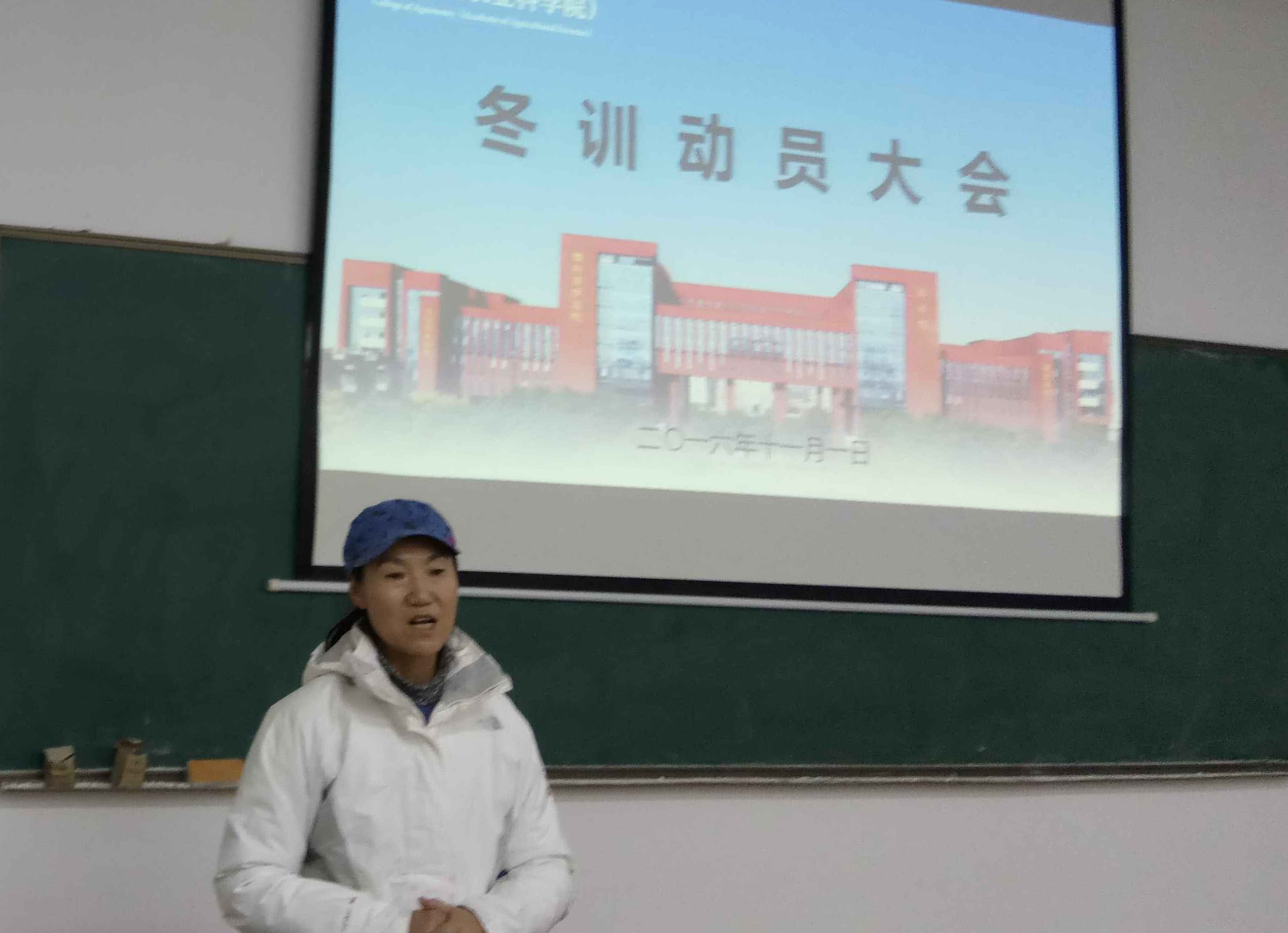 11月1日晚,农学院体育部在北校区小球馆二楼会议室组织召开了2016年冬训动员大会。农学院体育辅导员薛少朵老师,16级辅导员李春华老师,优秀运动员代表刘雅芳,金鑫及冬训队员们出席此次会议。