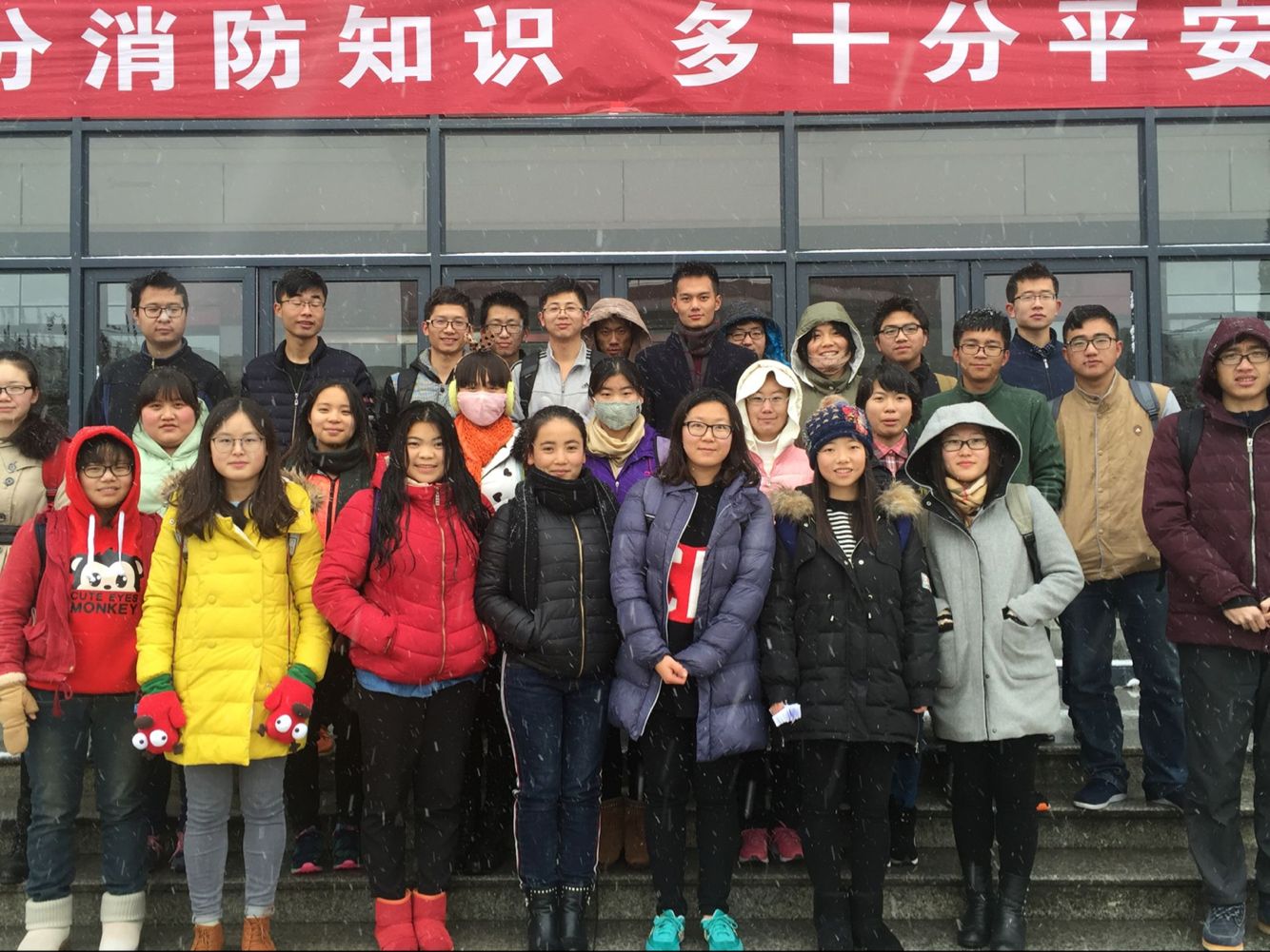 同学们在八号教学楼前合影