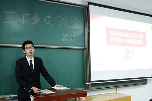 10月15日14:30,农学、植保、资环、园艺四个学院的三下乡活动交流会在北校区8307教室准时进行。本次活动由四个学院联合举办,每个学院派出两支代表队伍,与同学们分享暑期三下乡的活动成果和经验。