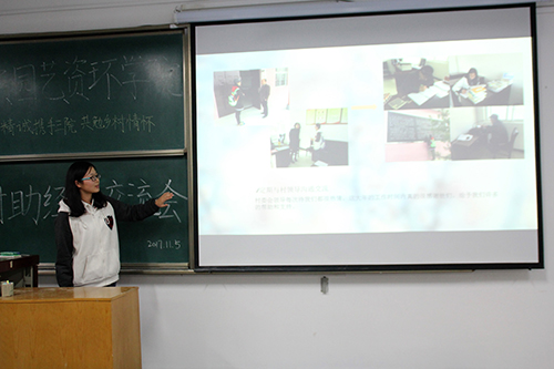 “到后来,我们总喜欢在孩子们的名字前加上‘我们家的’这样的前缀。我们已经不由自主地将他们当做自己的亲人”农学院曹新庄村村助傅文慧这样说。长期的支教已经使孩子们与同学们之间建立了深厚的友谊,对于她来说,最美好的时候就是在村口看到孩子们在阳光下期盼的面庞。在汇报中,当她提起曹新庄村的孩子们也总是满脸笑意。农学院永安村村助张华玺则是联系校内对传统文化有所研究的同学给孩子们开办国学讲堂,为孩子们心底埋下传统国学的种子。