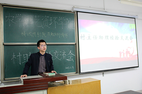 2017年11月5日,农学、资环、园艺三个学院联合举办大学生村主任助理交流会,农学院团工委副书记刘涵宇,资环学院团工委副书记杨辰,园艺学院团工委副书记赵华彬出席本次交流会。