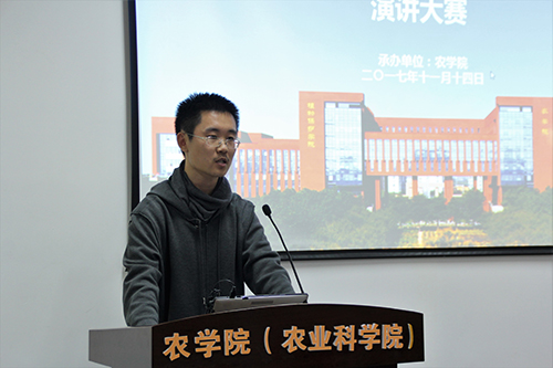 2017年11月14日晚上七点半,农学院于南校区农科大楼216室进行了"身边的典型,学习的榜样"主题演讲比赛。农学院教授张保军老师,学工秘书彭小风老师,农学院团工委书记高雪纯老师作为嘉宾评委参加了本次活动。本次演讲比赛旨在号召广大农科学子学习王辉教授的先进个人事迹,激励同学们拼搏奋进,为祖国的农业发展做出贡献。