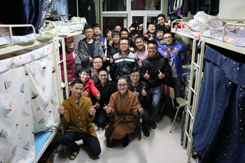 毕业生服务委员会的同学前期结合考研学生实际需求策划活动,其中精致的小卡片是整个活动的暖心点,卡片内容由与考研同学关系甚好的非考研同学书写,里面包含满满的祝福。活动当晚,沙老师深入宿舍,在发放慰问品的同时了解考研学生备考状况及存在的困难,勉励同学们把握最后冲刺阶段,调整心态,打好最后的攻坚战。虽然夜已深,但仍旧有学生坚守在自习室,沙老师为学生这份认真坚持的勇气点赞,并由衷感叹:“我们是一个温暖的大家庭,如今你们不是一个人在孤军奋战,我们一直都在,一直是你们最坚实的后盾”。