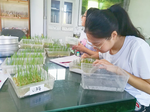 女生们实习首日便进入实验室,协助实验人员完成小麦种子发芽率测定实验。她们认真学习实验操作规范和计数分析方法,严格把控每个品种批次种子发芽率达合格标准,为几个品种批次种子出具了真实可靠的实验结果。在与公司销售经理王文科的座谈中,她们了解了玉米小麦种子的精选、包衣、熏蒸等加工包装流程以及相关的种子销售知识。她们还主动学习了《农作物种子标签管理办法》,根据国家相关政策法规要求完成了繁重的农作物种子标签的粘贴工作。