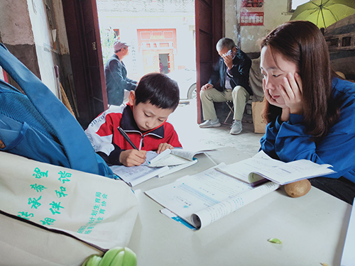 支教小分队成员为孩子们辅导作业