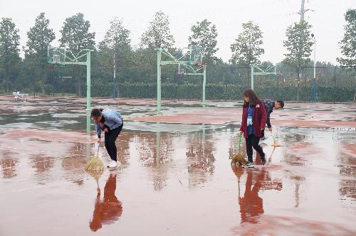 经过一日大雨的洗礼,篮球场已经无法进行比赛,为了比赛的顺利进行,农学院研究生会次日一早就组织学生进行场地的清理,尽最大的努力将场内的杂物和积水清扫的一干二净,体现了我院研究生会的优良作风和精神面貌。决赛时间很快来临,球场并没有因为人数的减少而冷清,反而经历了前一日的拼杀后,气势更加剑拔弩张。场上球员一个个努力拼搏,奋勇高歌,表现了运动员的风采,使这次的篮球赛格外绚丽多彩,分外成功。