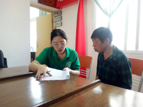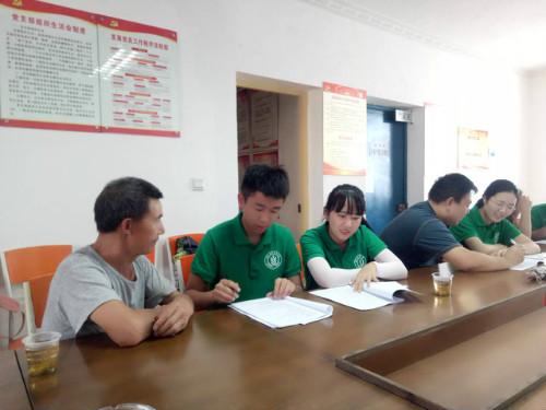 当天下午,调研队在泾洋村办事处继续开展问卷填写工作。王主任也帮忙通知了能够到办事处办公室的农户。调研工作开展得十分顺利,村民们都认真回答了问卷上的每一个问题。队员们与当地村民之间虽然存在着一定的语言障碍,但是村民们还是十分耐心的与队员们沟通,放慢语速、复述,直到队员理解。