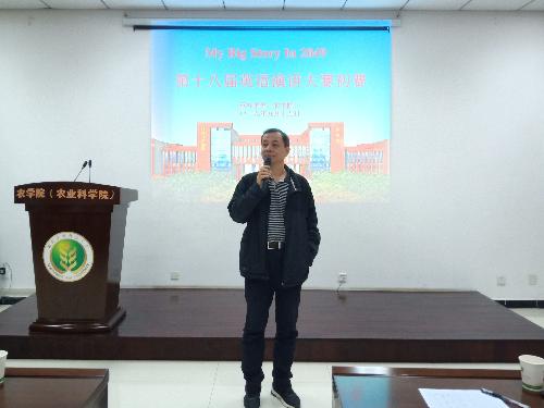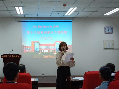 为鼓励农学院学子畅享未来,丰富校园生活,提高英语口语能力,农学院于2019年9月15日晚在农科楼举办了一个院内友谊英语演讲选拔赛,该选拔赛以“My big story in 2049”为题目,出席该比赛的评委有宋卫宁老师,刘孟君老师,王宝平教授,别勇磊老师。除了参赛评委,还有从各班推选出来的优秀的参赛选手。