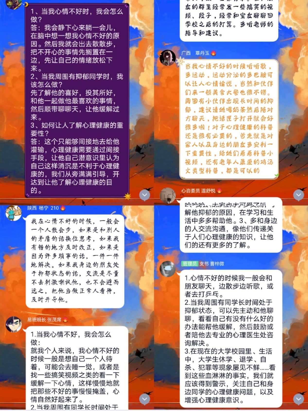 疫情原因,导致学生长时间滞留家中易造成心理不畅等问题;且心理方面本就是当代大学生乃至当代年轻人问题易出、问题频出的领域。本着以上现象,1804班开展了本次班会,旨在相互交流建立健康身心、相互学习以求解决之法。