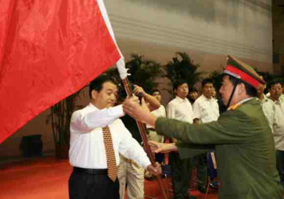 校党委书记张光强向2007级新生军训团授旗