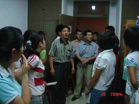8月26日晚,在辅导员老师及部分学生会干部的陪同下,副院长廖允成,党委副书记惠安堂亲临07级新生宿舍视察慰问。