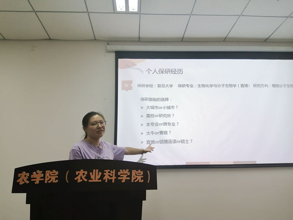 为引导2018级本科生了解保研流程,营造积极氛围,提前做好未来发展规划,2021年6月2日晚,农学院在216会议室举办保研分享交流会,保研至复旦大学的章美琪、孙紫嫣,保研至中科院作物遗传所的张晓雨和保研至西北农林科技大学的郭雷四位2017级本科生进行保研经验分享,2018级100余名学生参加会议。