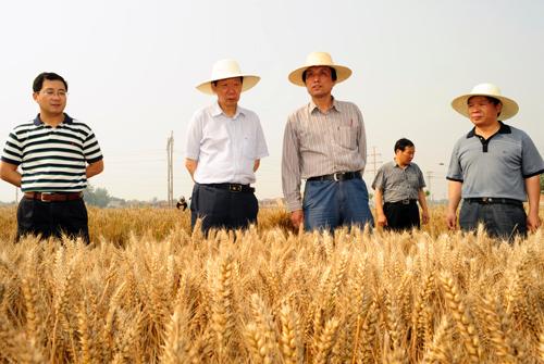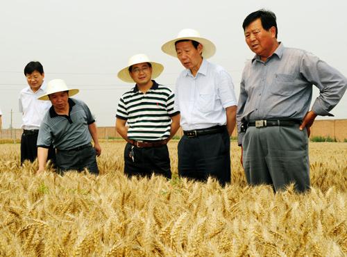 当天下午,孙武学校长分别来到小麦育种专家王辉、张改生、王明歧、吉万全、王新中、陈耀锋和刘曙东的小麦育种试验地 ,仔细查看了田间即将收割的小麦品种长势和成色,并与正在田间选种的专家进行交谈,询问每个品种的亩穗数、穗粒数、千粒重等情况。