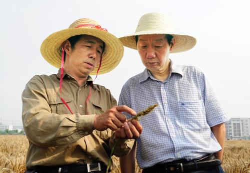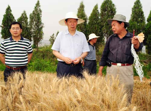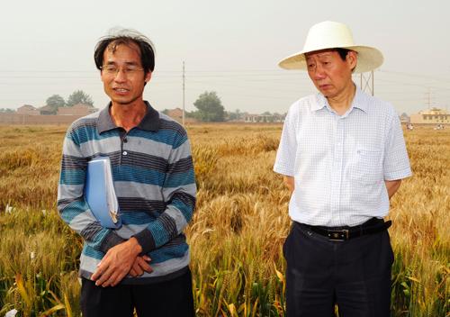 孙武学校长察看陈耀锋教授的小麦育种试验