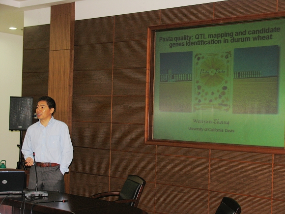 9月3日-9日,美国加利福尼亚戴维斯大学植物科学系高级研究员张文俊博士应邀来我院进行学术交流。9月3日上午,张文俊博士在交流中心210为我校作物遗传育种科教人员及相关专业研究生作了题为《Pasta quality: QTL mapping and candidate genes identification in durum wheat》的学术报告;下午与我院作物遗传育种专家和来自生命学院的专家教授就作物分子遗传育种研究的现状、主要的方法和技术及其利用等方面进行了深入广泛的讨论,并就进一步的合作研究作了探讨。随后,张文俊博士于9月4日-6日走访了我院作物遗传育种有关专家,就双方的共同感兴趣的研究课题进行了认真细致的交流,达成了一些合作意向。同时,张文俊博士还利用这次访问的机会,在我院作物遗传育种科研平台、国家小麦改良中心杨凌分中心与我院作物遗传育种专业的研究生就试验设计、实验技能等方面进行了交流及培训。