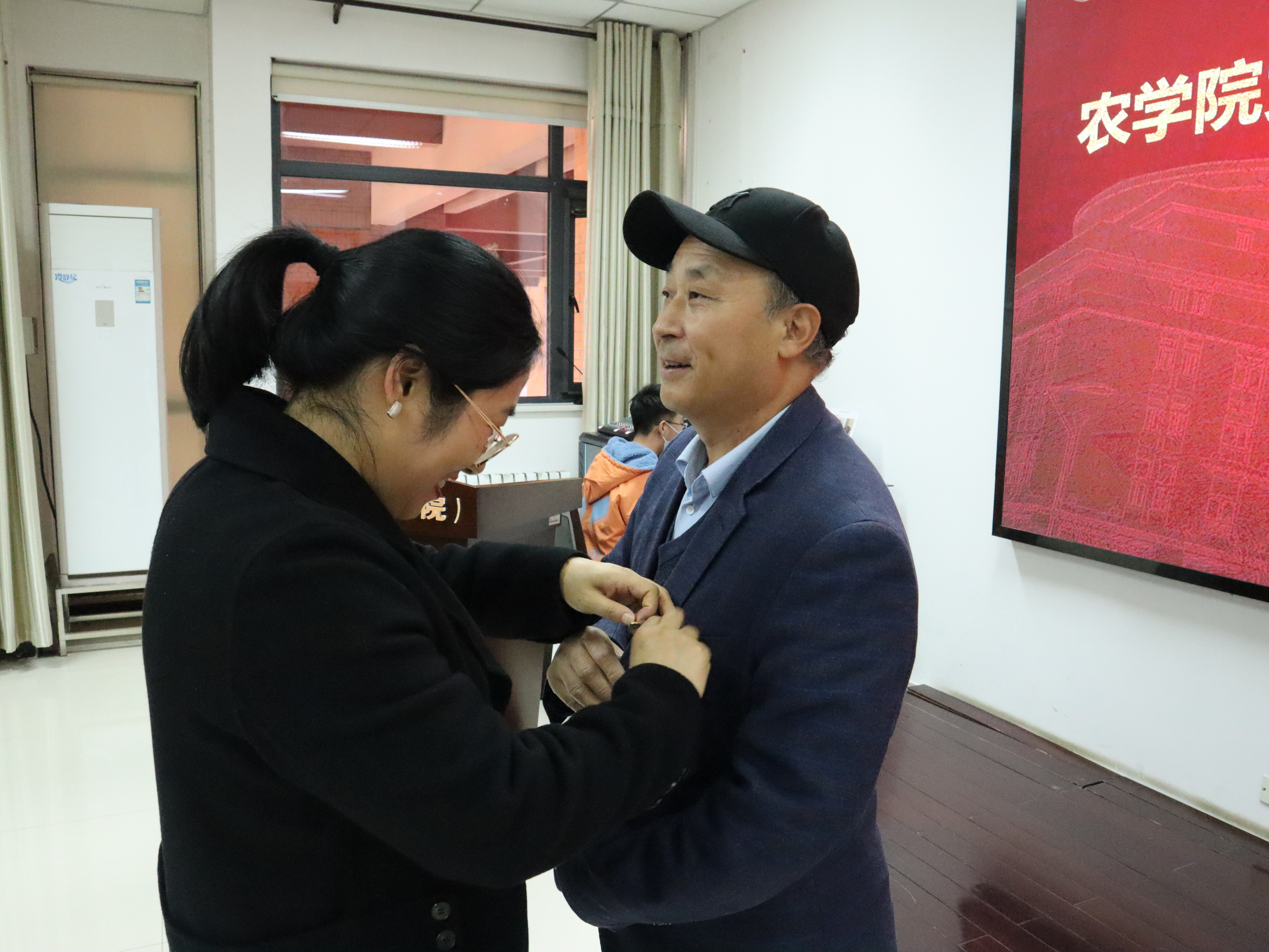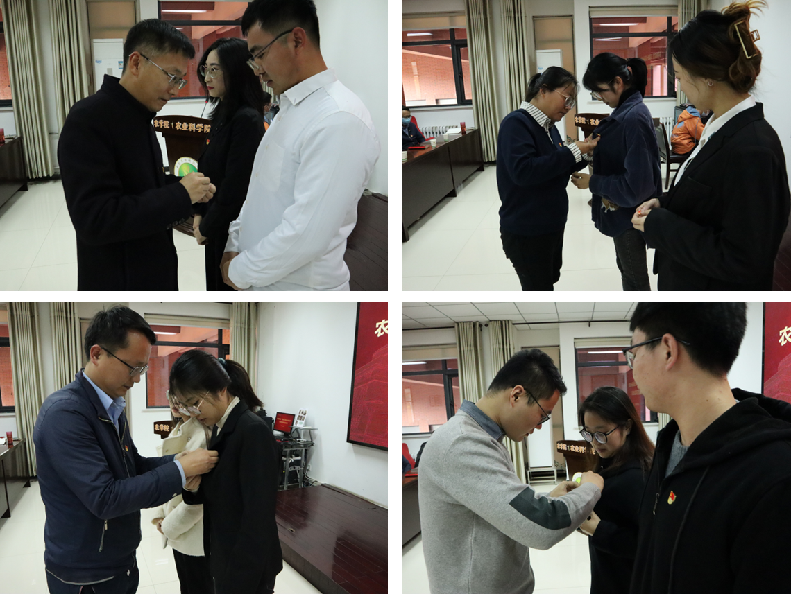 院党委副书记吴清华为新发展教师党员佩戴党徽