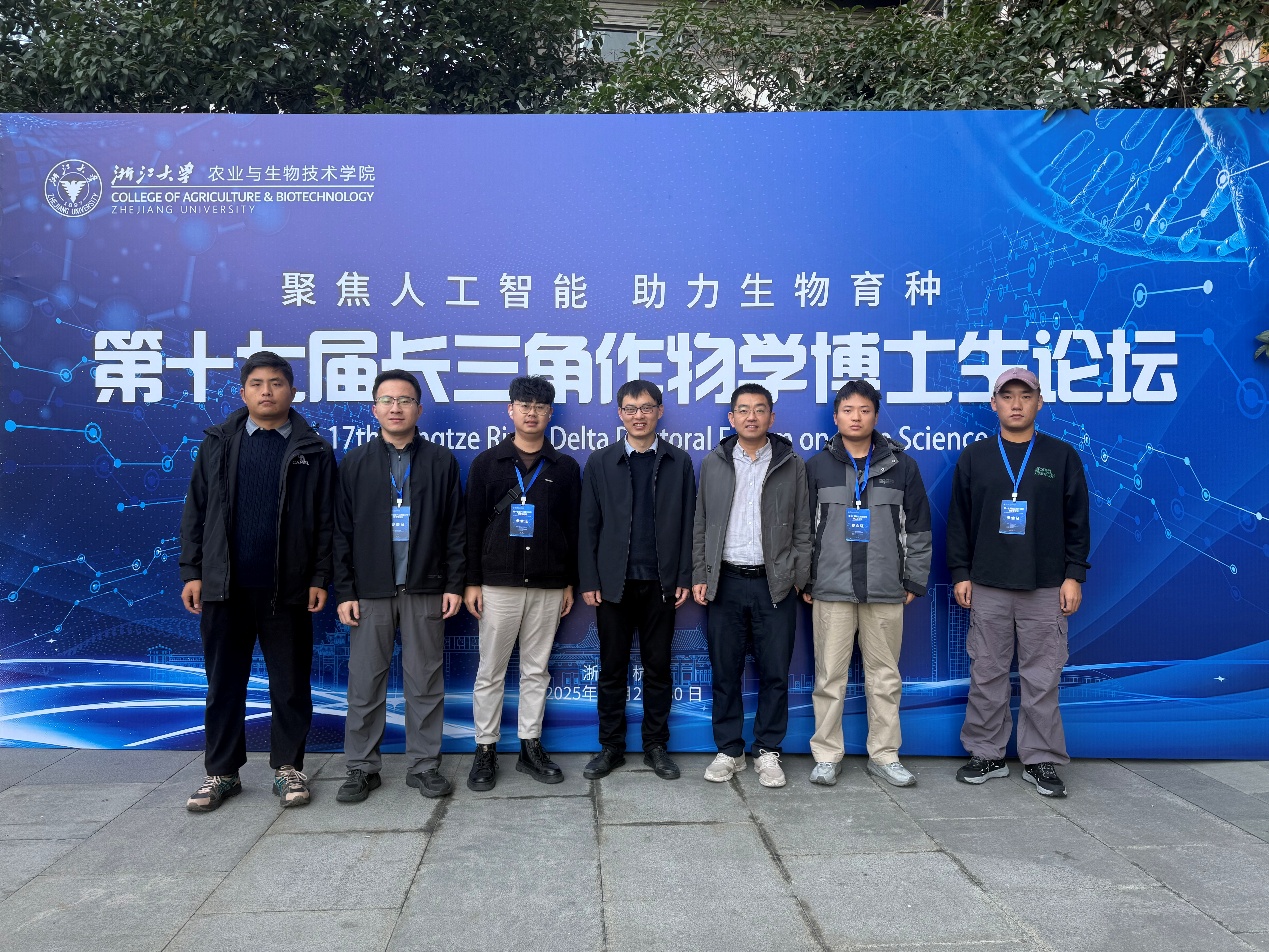 2025年11月28日至30日,由南京农业大学、浙江大学、扬州大学联合主办,浙江大学农业与生物技术学院承办的第十七届长三角作物学博士生论坛在杭州召开。论坛以“AI赋能生物育种,驱动农业新质生产力”为核心主题,聚焦AI+绿色生产、AI+基因组选择、AI+基因编辑等前沿方向,为全国作物学领域青年学者搭建了学术交流平台。我院副院长聂小军教授和王晓明副教授及6名博士生参加了本次论坛。