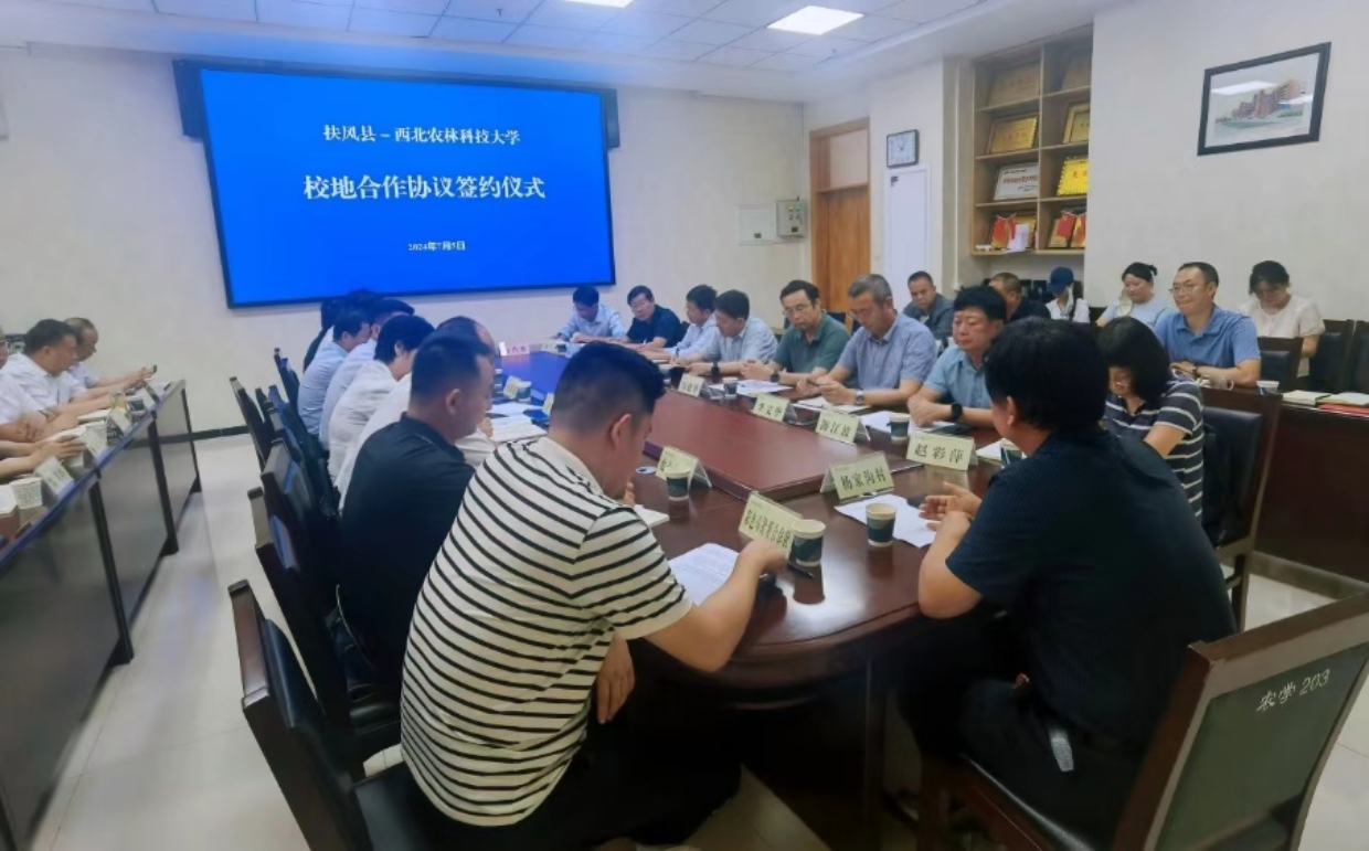 会上,扶风县委组织部部长杨军亮与农学院单卫星签署了校地合作协议。