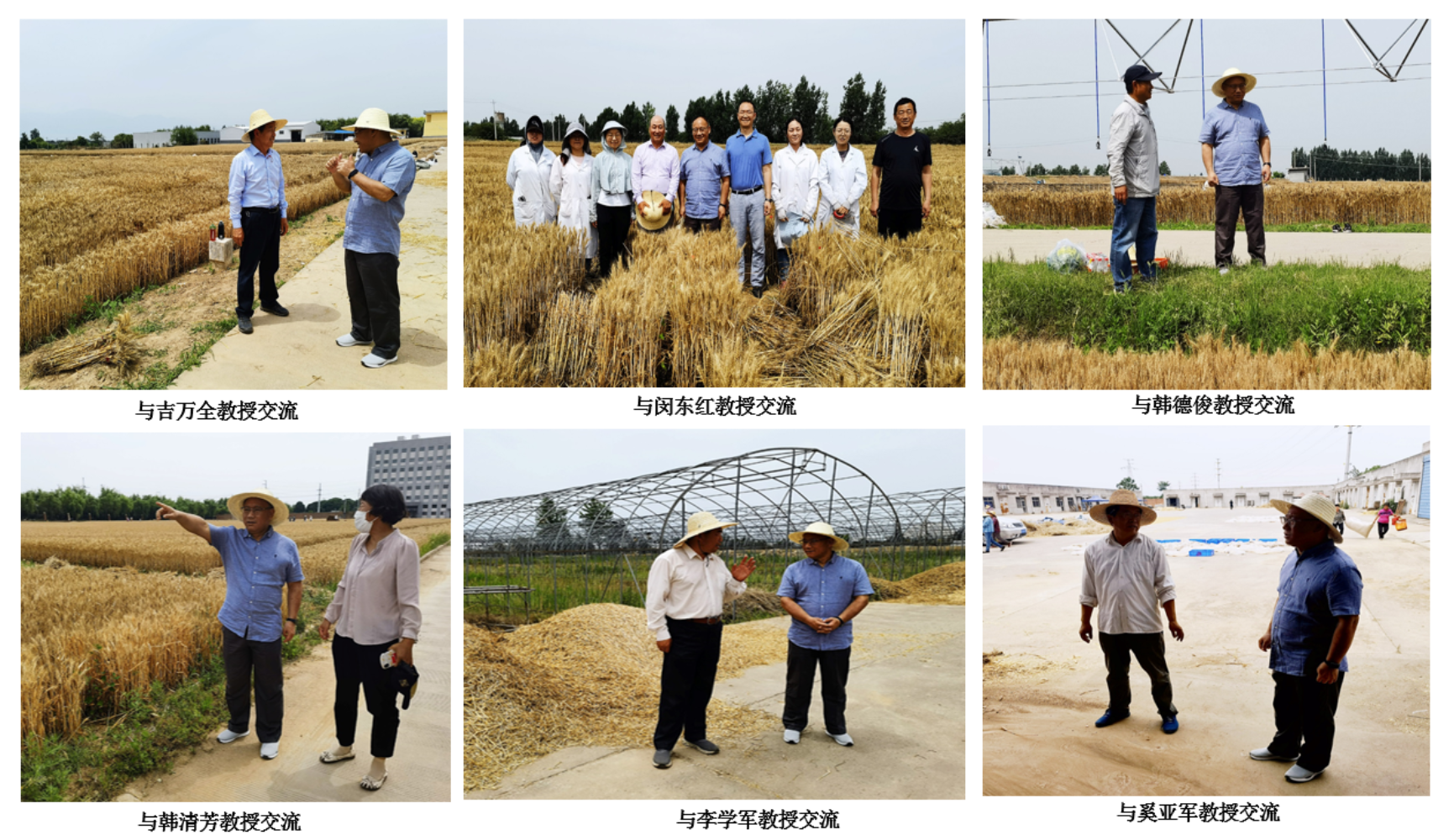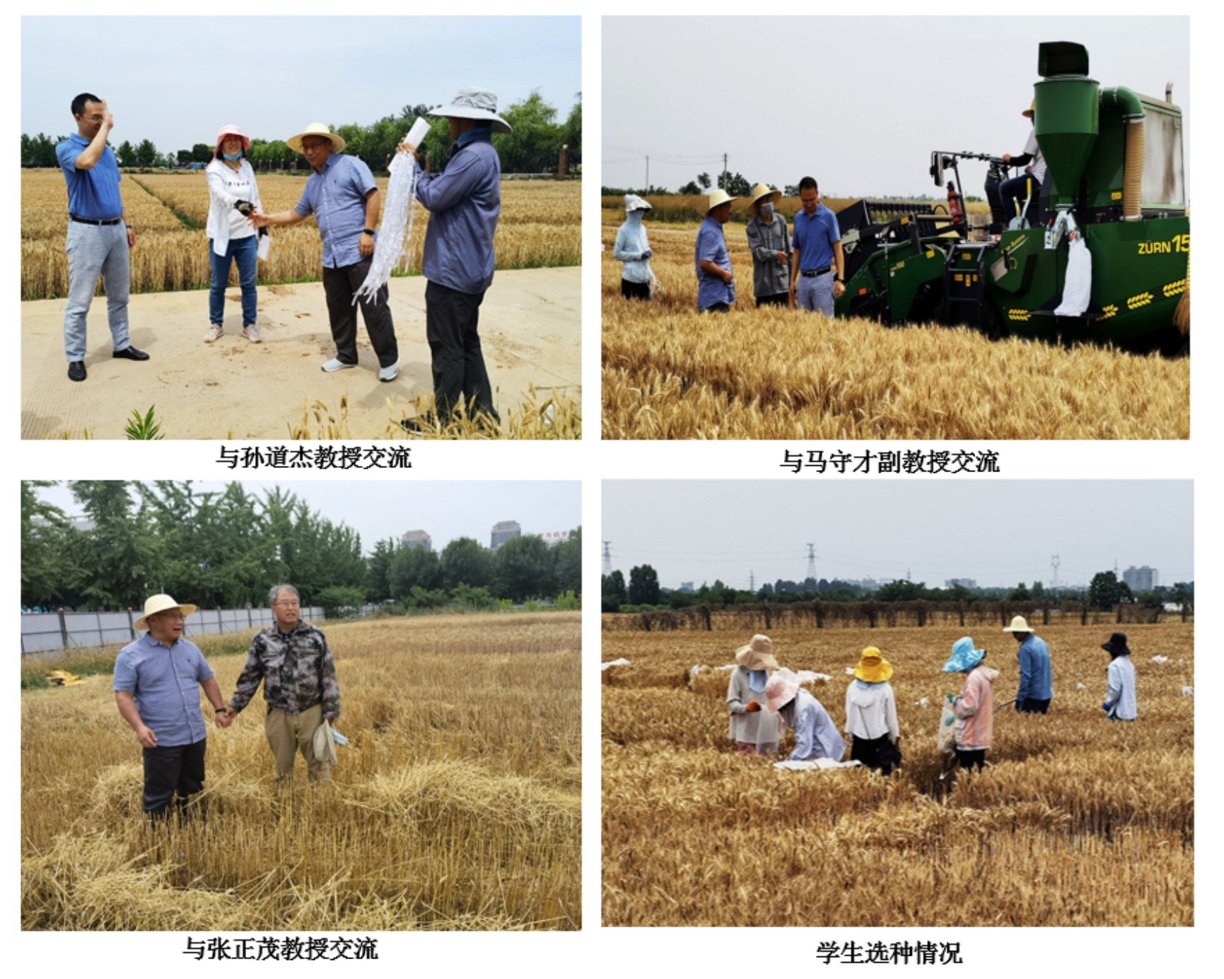 在夏收现场,张海成书记与吉万全、高翔、闵东红、张正茂、李学军、孙道杰、韩德俊、奚亚军、张晓科、韩清芳、马守才、于澄宇等小麦、油菜育种专家进行交流,对夏收情况、品种选育等工作进行了解,并代表学院对各位育种专家的辛勤付出表示感谢,对参加夏收工作的学生提出“要发扬育种优良传统,传承育种精神,培养艰苦奋斗的爱农情怀,继续续写西农人诚、朴、勇、毅的优秀品质”的期望。