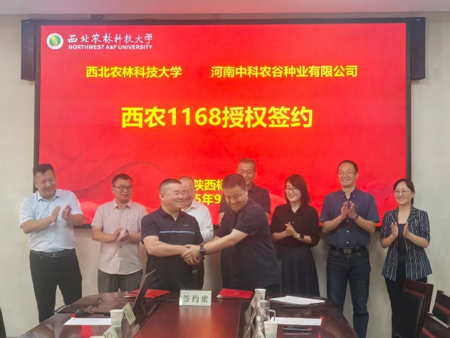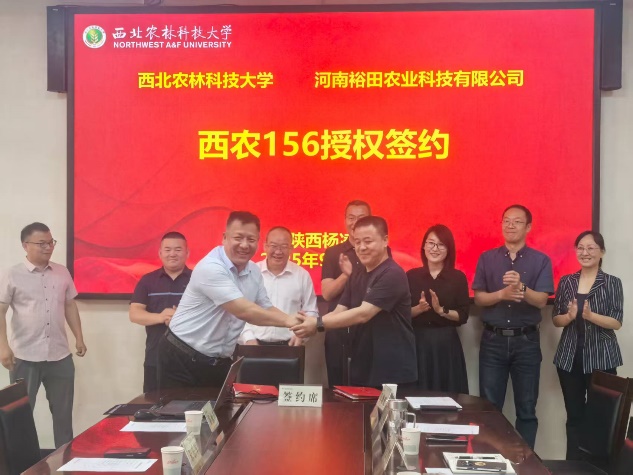 2025年9月15日,小麦新品种“西农156”、“西农1168”授权签约仪式在农学院203会议室顺利举行,西北农林科技大学农学院与河南裕田农业科技有限公司、河南中科农谷种业有限公司就上述品种的授权推广合作事宜达成共识并完成签约,这是西北农林科技大学农学院科研成果转化的又一成功案例。